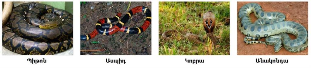 Ամենամեծ օձը անակոնդան է՝ 10 մ: Օձի խայթոցի դեպքում հարկավոր է անհապաղ վերքը մաքրել թույնից, որպեսզի այն չտարածվի արյան հոսքով: